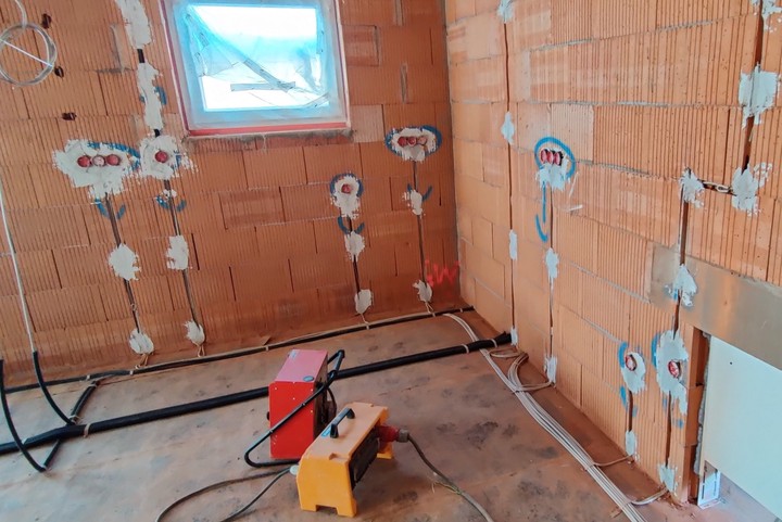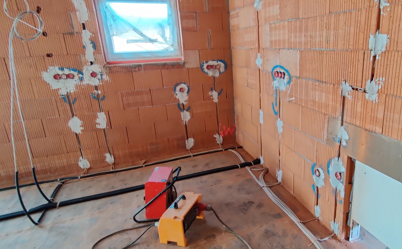 Elektroinstallation vor Innenputz Julia Feb 25, 2021 1 min Lesezeit Die Baustelle ist wieder aus dem (kurzen) Winterschlaf erwacht. Ende letzter Woche sind die Stemmarbeiten erfolgt, gefolgt von der Elektroinstallation von Montag bis heute. Nächste Woche soll der Innenputz kommen. Julia