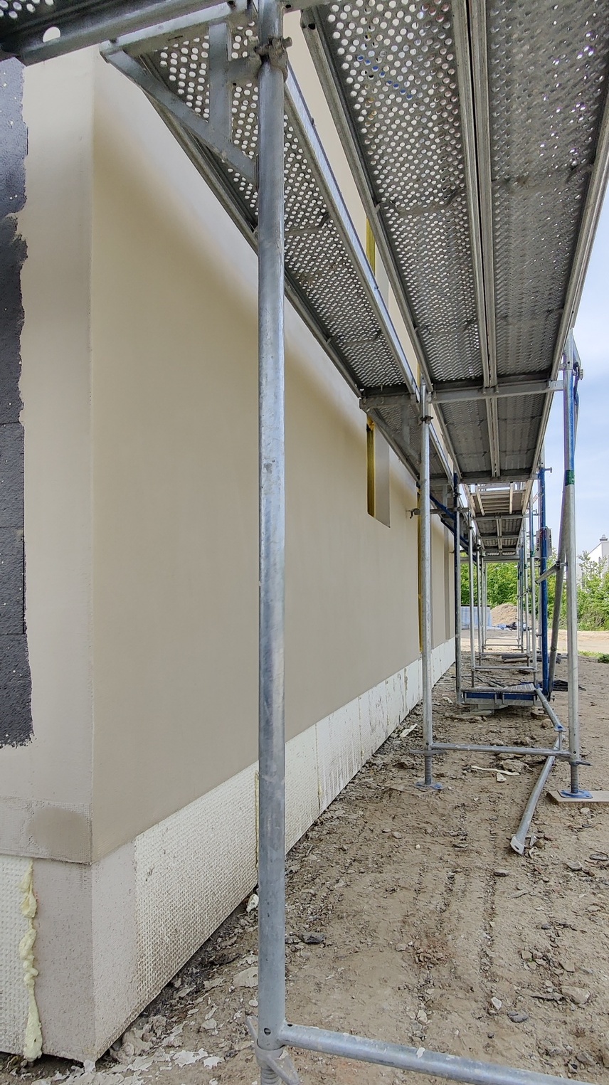 An der Aussenfassade ist der Unterputz mit Armierung angebracht worden. Nächste Woche soll die Grundierung folgen.