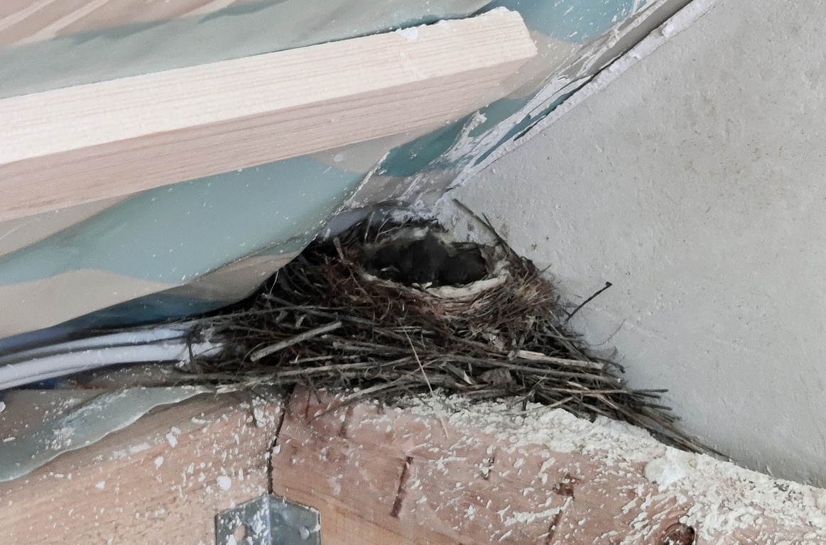 Und es gibt auch bereits erste Hausgäste: eine Grauschnäpper-Familie hat sich im Studio eingerichtet.