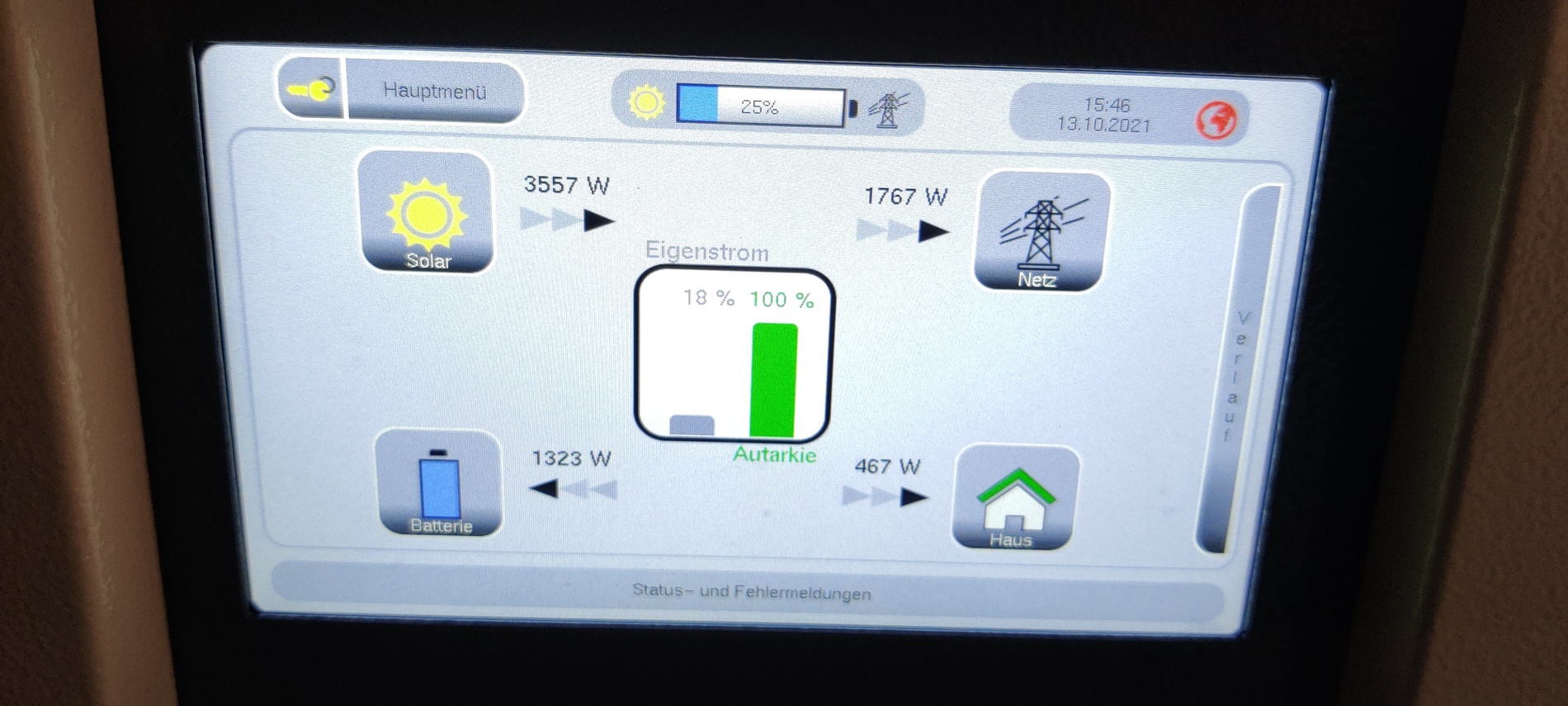 Nach dem Tausch unseres Zählers gegen einen Zweirichtungszähler durch den Netzbetreiber in Braunschweig ist die Anlage nun vollständig in Betrieb genommen und speist auch bereits die gesamte überschüssige Energie ins Netz ein.